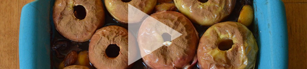 The amount of Cortland apples that you need corresponds directly to the size of your dish, just make sure that you wash your apples, core them (using an apple corer), and then make a thin slit around your apple lengthways. This will prevent the apple from busting open in the oven. Now add enough water to cover your apple by a generous inch, then place your dried fruit into the water (you’re probably looking for around ½ cup of dried fruit total), and sprinkle generously with cinnamon. My mom likes to use a little strainer to ensure that the cinnamon is evenly dispersed.