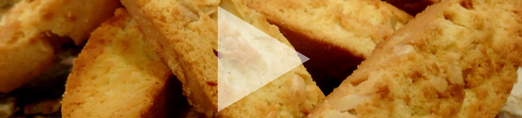 Let cool for a few minutes, then slice into 1″ pieces, lay out on the baking sheet again, and bake for another 15 minutes. At this point, the end pieces are ready to be removed, and the rest of the cookies are either ready to be turned over or need another few mins to get sufficiently golden brown.